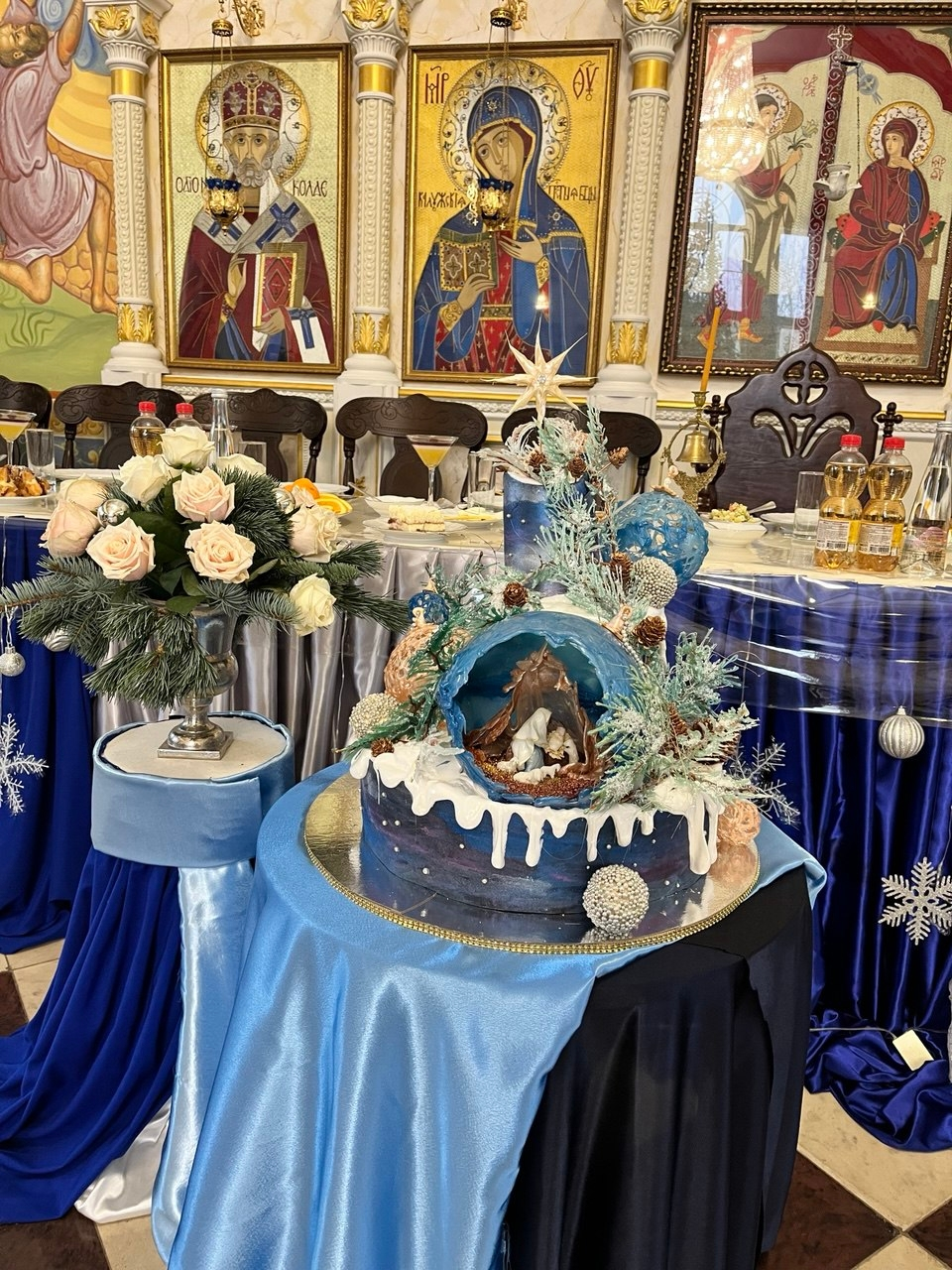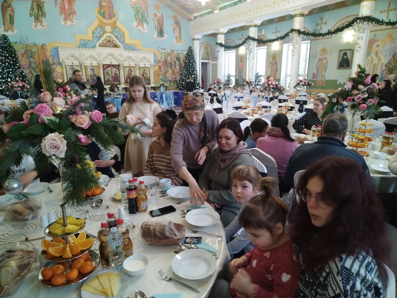Но сначала все посетили утреннюю службу в храме, вознесли хвалебные молитвы Господу Богу и Богоматери. А потом отправились в очень красивую трапезную, где воспитанницы приюта Отрада подготовили красочный интересный концерт и вкусные угощения. И никто не ушел без сладкого подарка!